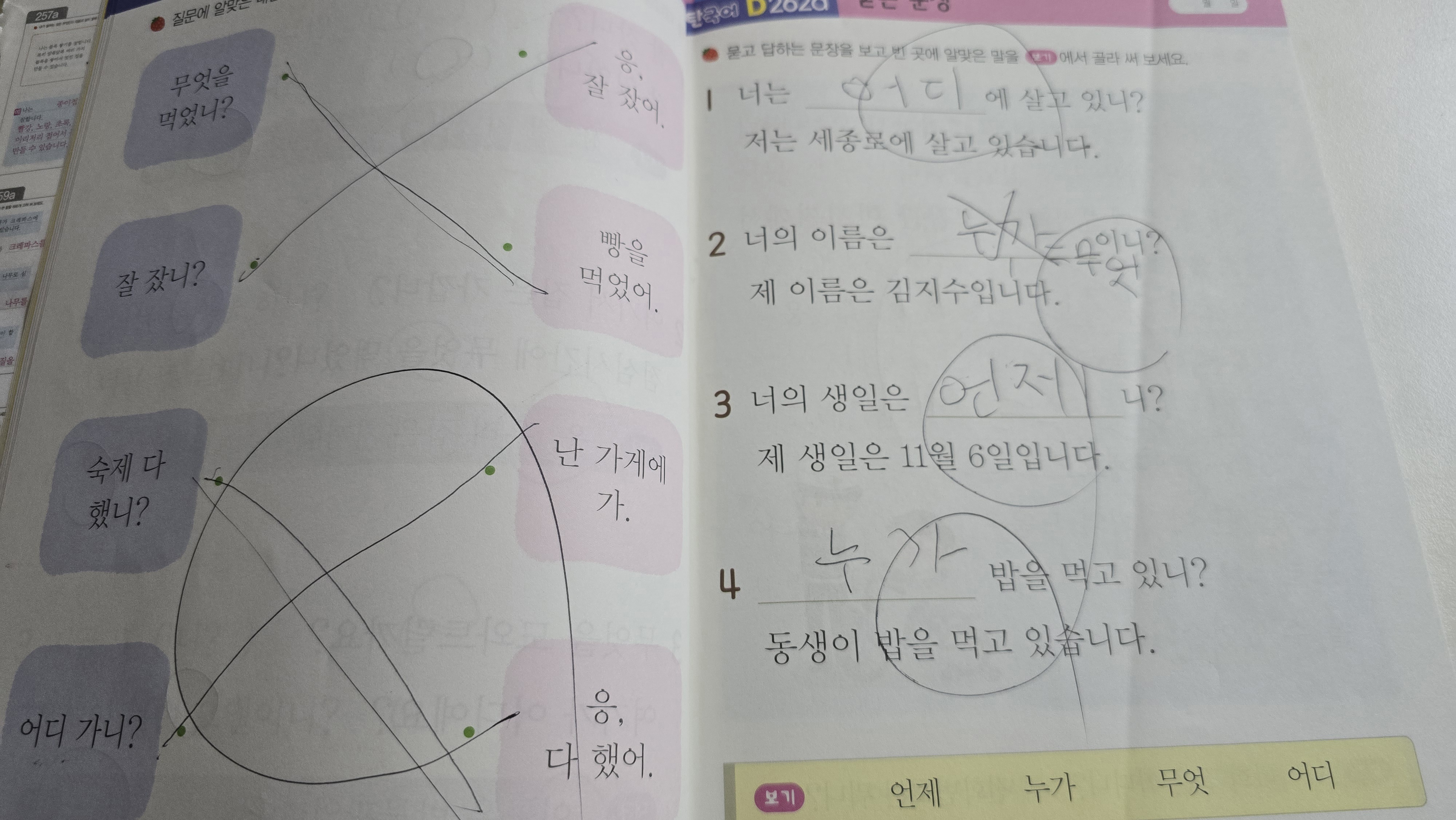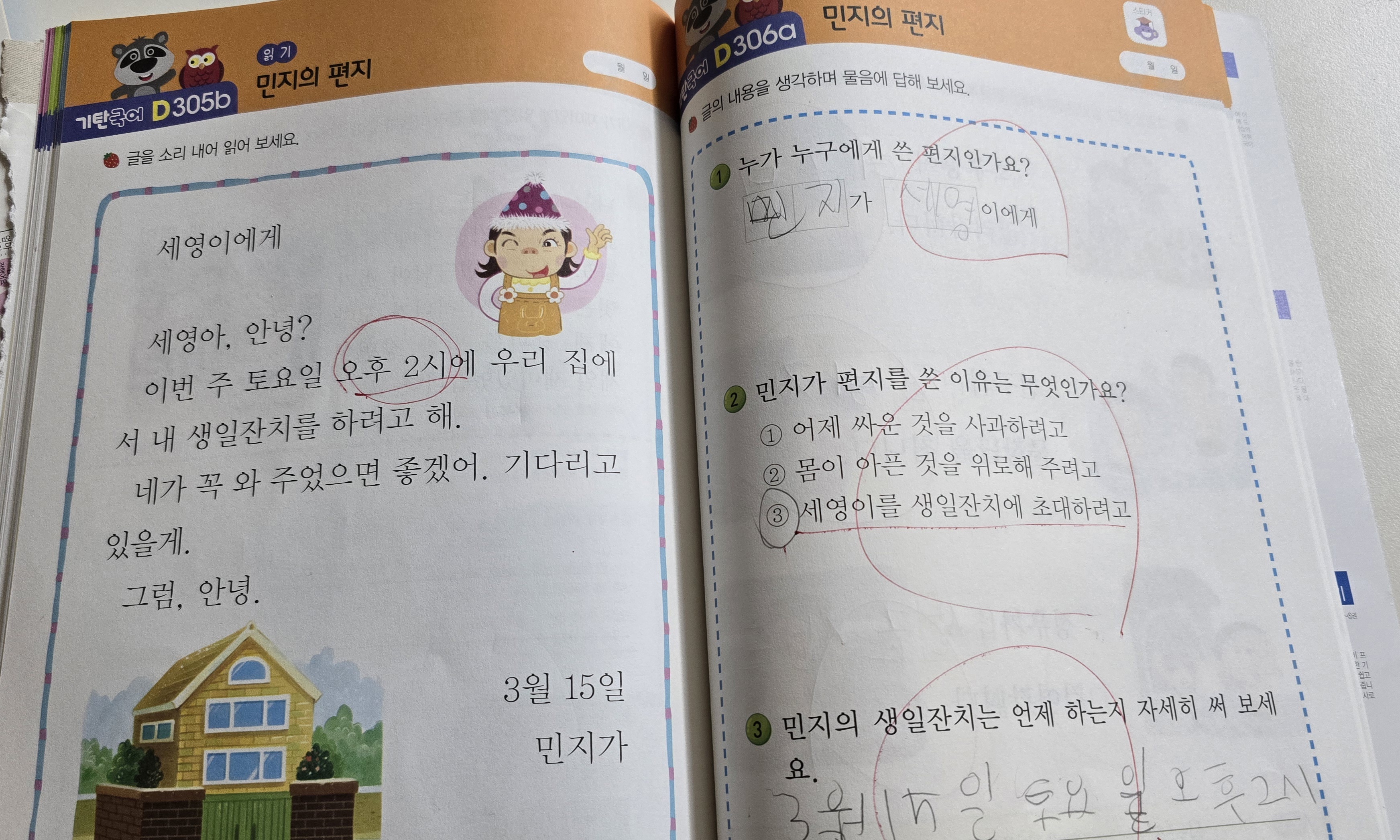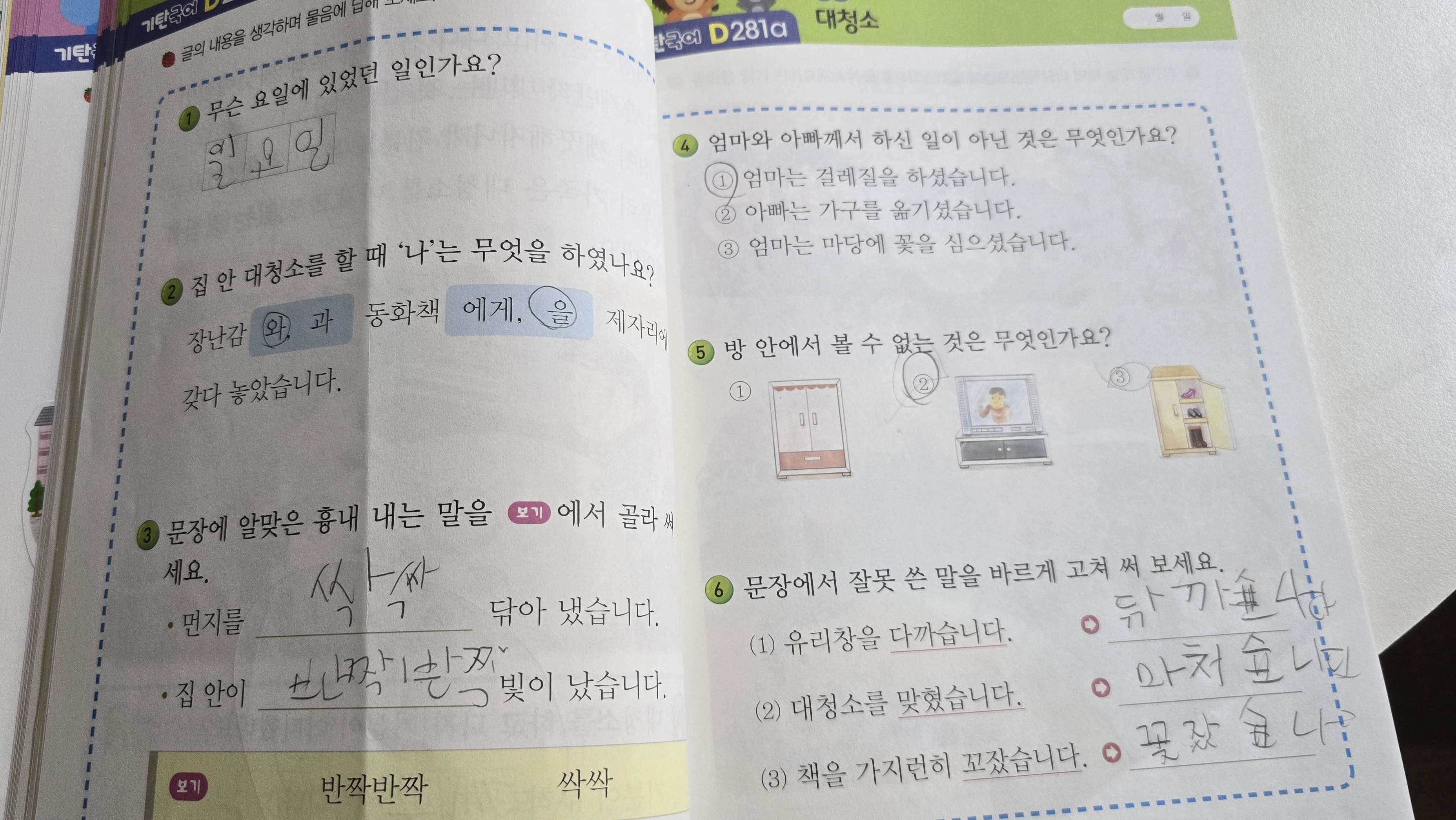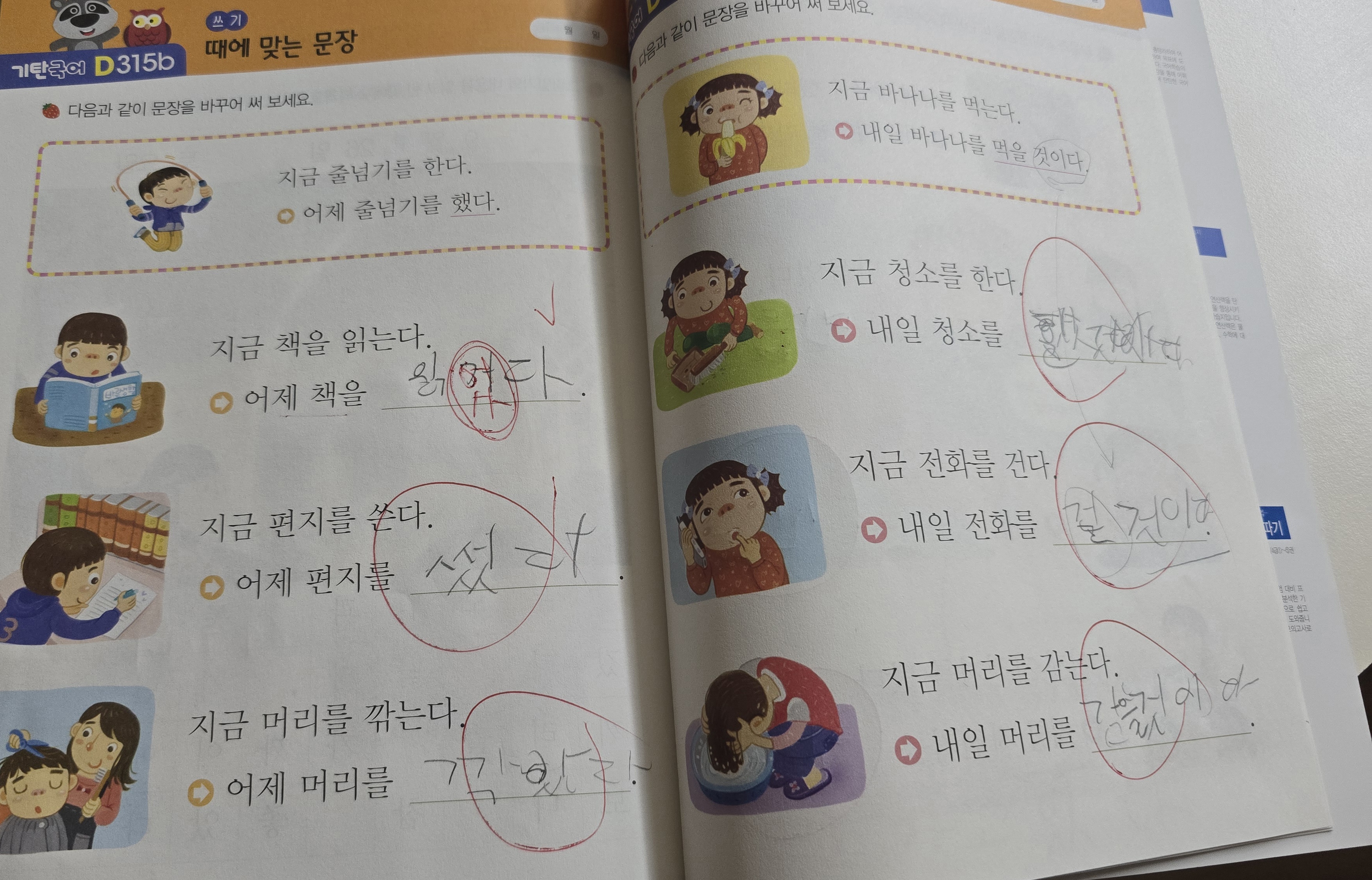 그래도 자기가 생각해서 문장을 쓰는 단계까지 와서 기특하다. 예전같았으면은 거의 한글자도 쓰지도 못하고.. 나한테 물어봤었는데