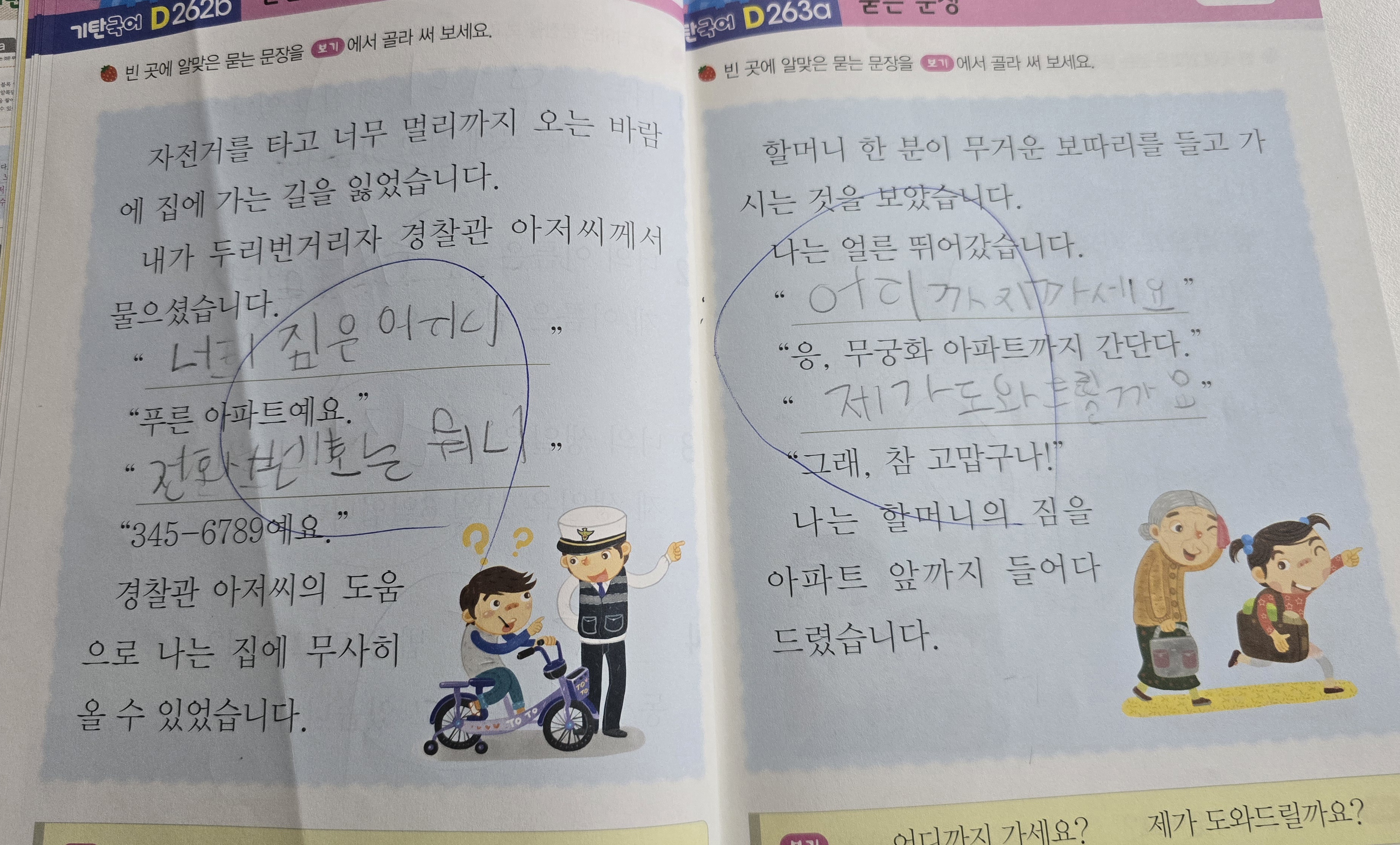 문장을 써야하는 경우는 D단계에서는 "보기"가 다 제시되어있기때문에 골라서 쓸 수 있어서 쉽게 쓸 수 있는데 E단계로 넘어가면 자기가 생각해서 써야하고 추론문제도 수준이 높아져서 조금 어려워지는것 같다.