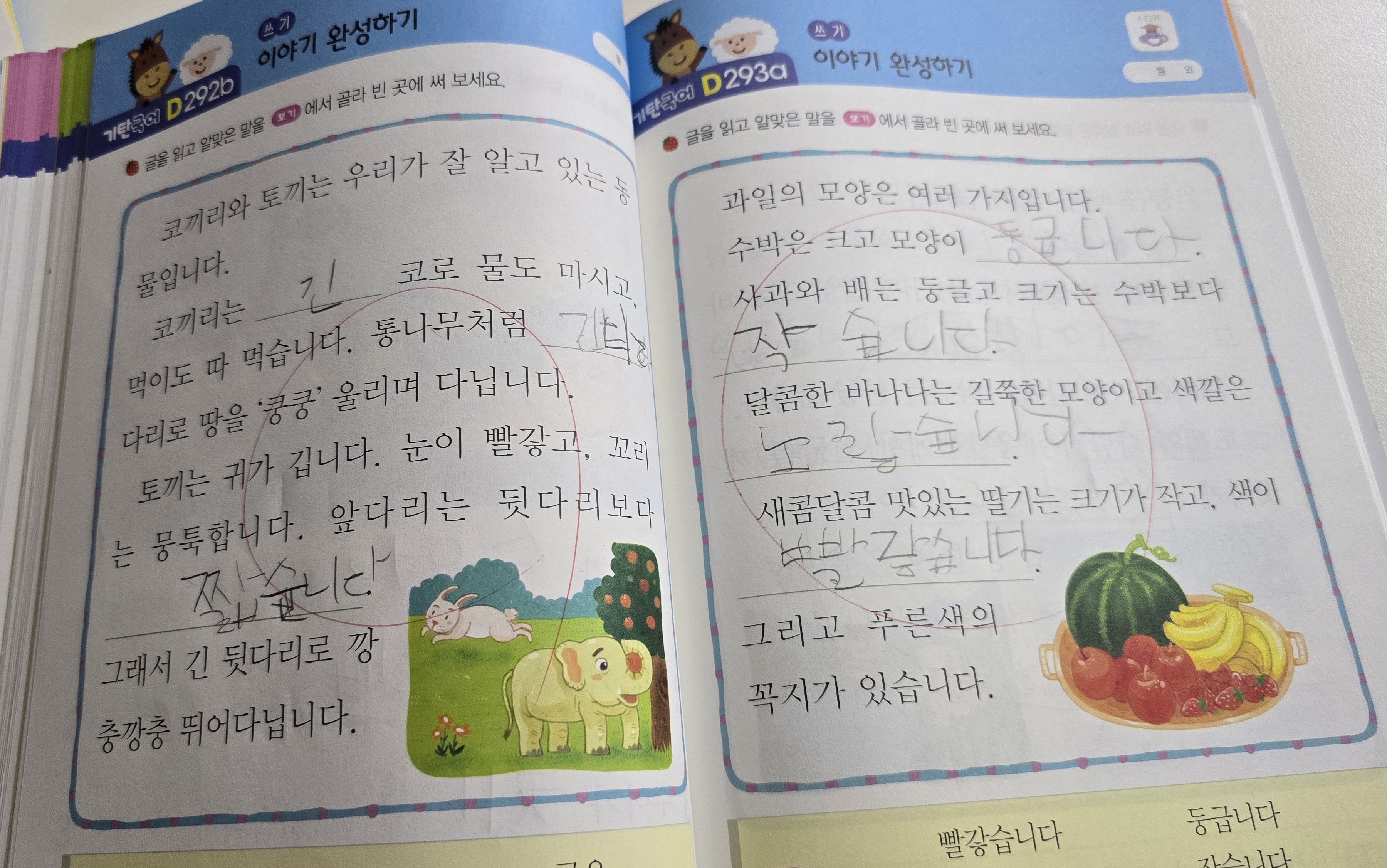 글자 맞춤법은 계속 공부시켜야할것 같고..