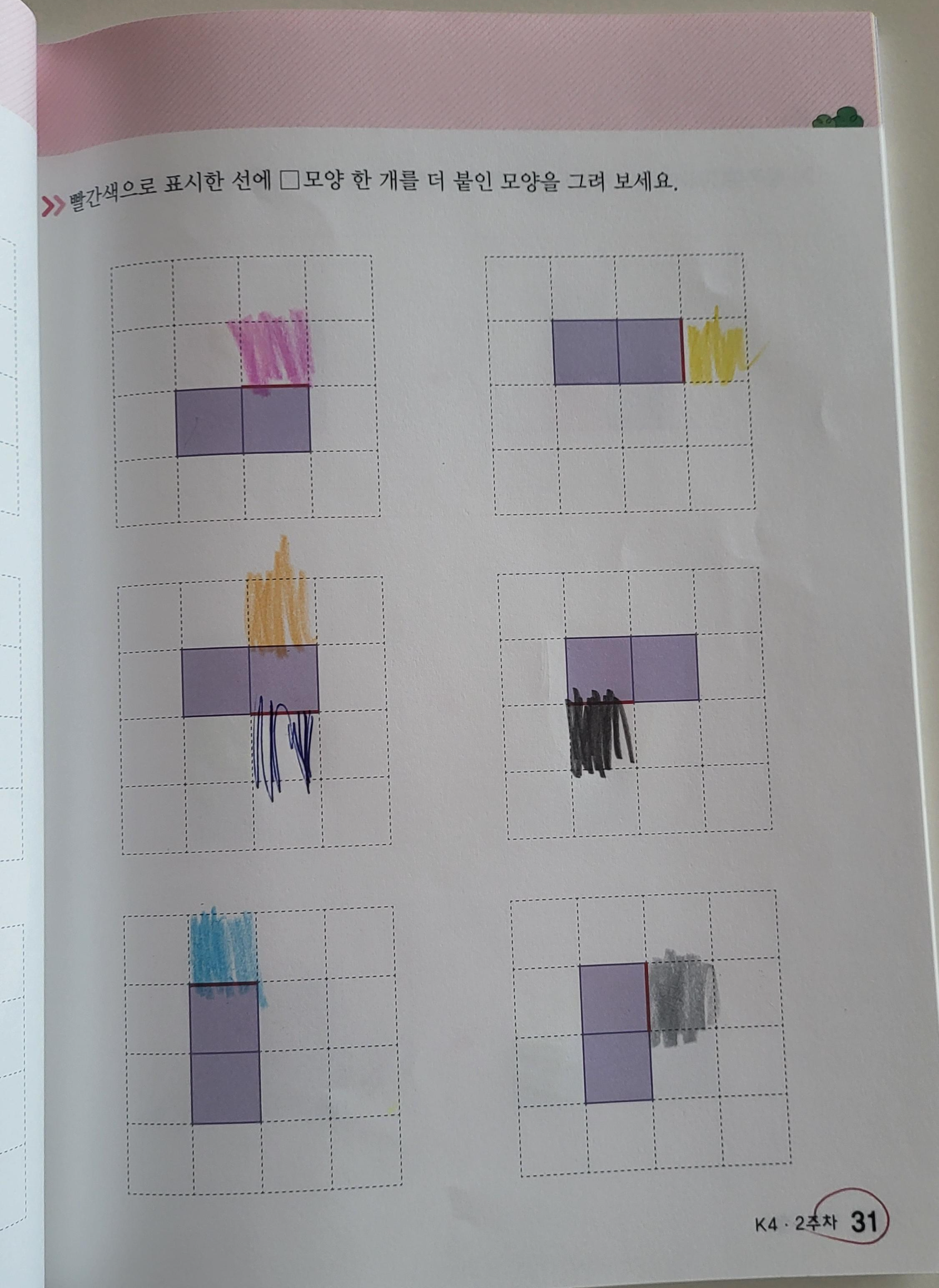 2주 차쯤에는 입체적인 모양 색칠해 보기