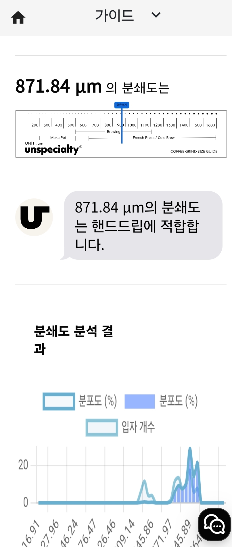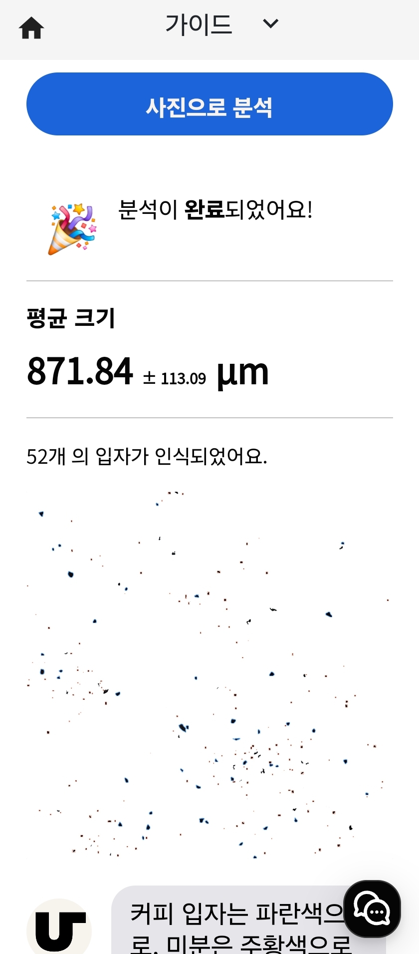 사진을 찍으면 분쇄도를 알 수 있다고 한다.