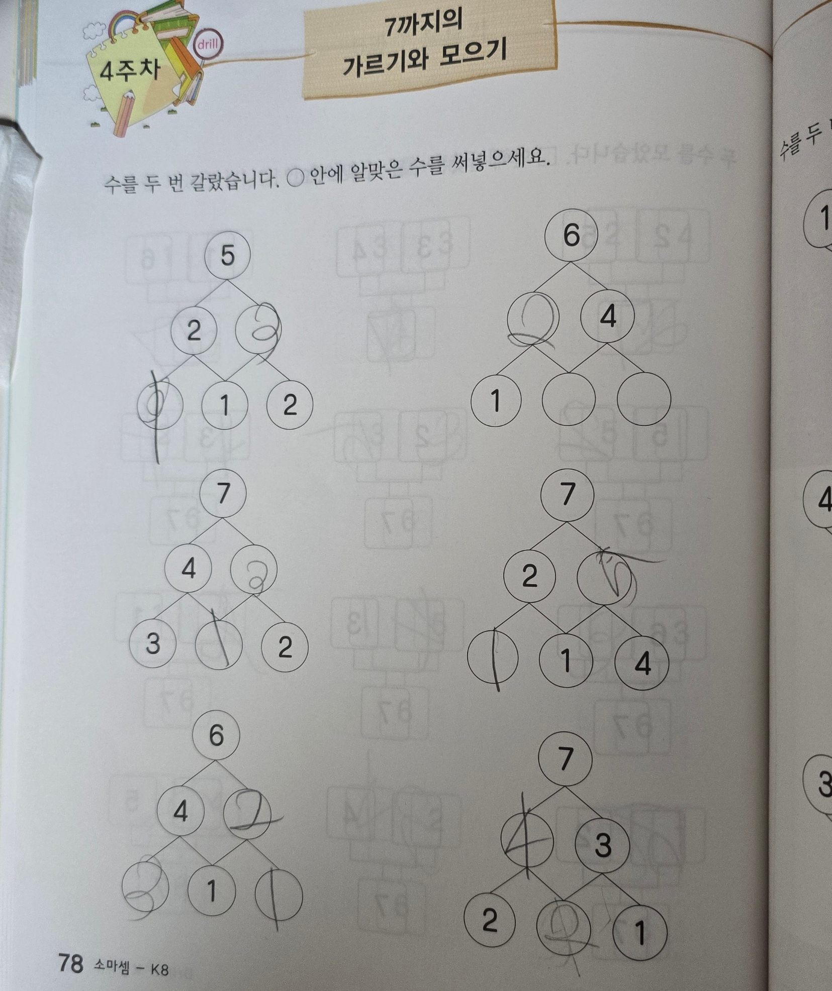 가르기 모으기 개념을 점점 깨우치는듯 하다.