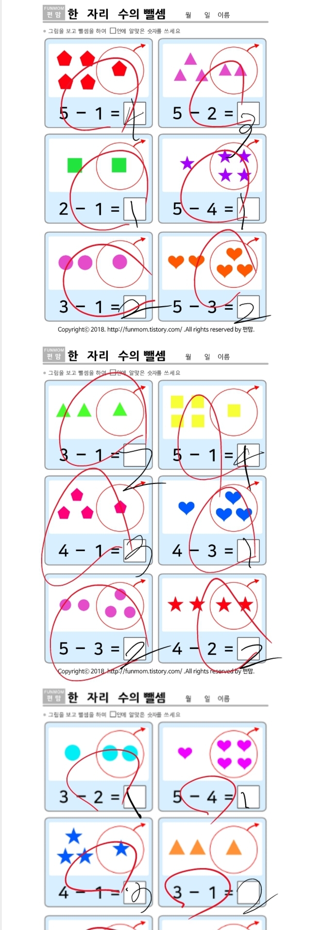 그래서 이 한권 끝내고 기탄수학연산문제집으로 넘어갈때 -5까지는 수월하게 했다.