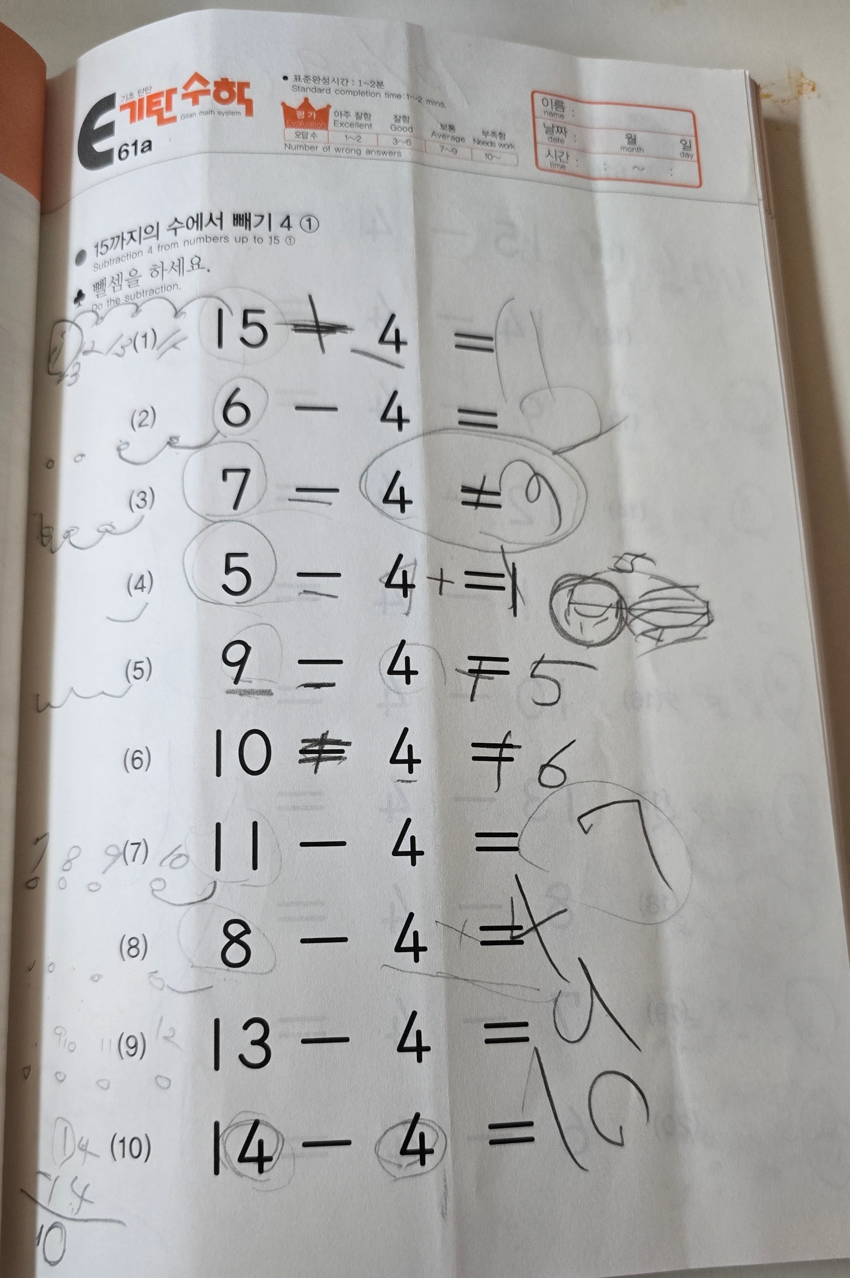 매일매일 꼬박꼬박은 못하더라도 2일에 한번은 꼭 뺄셈문제를 풀도록 했다.