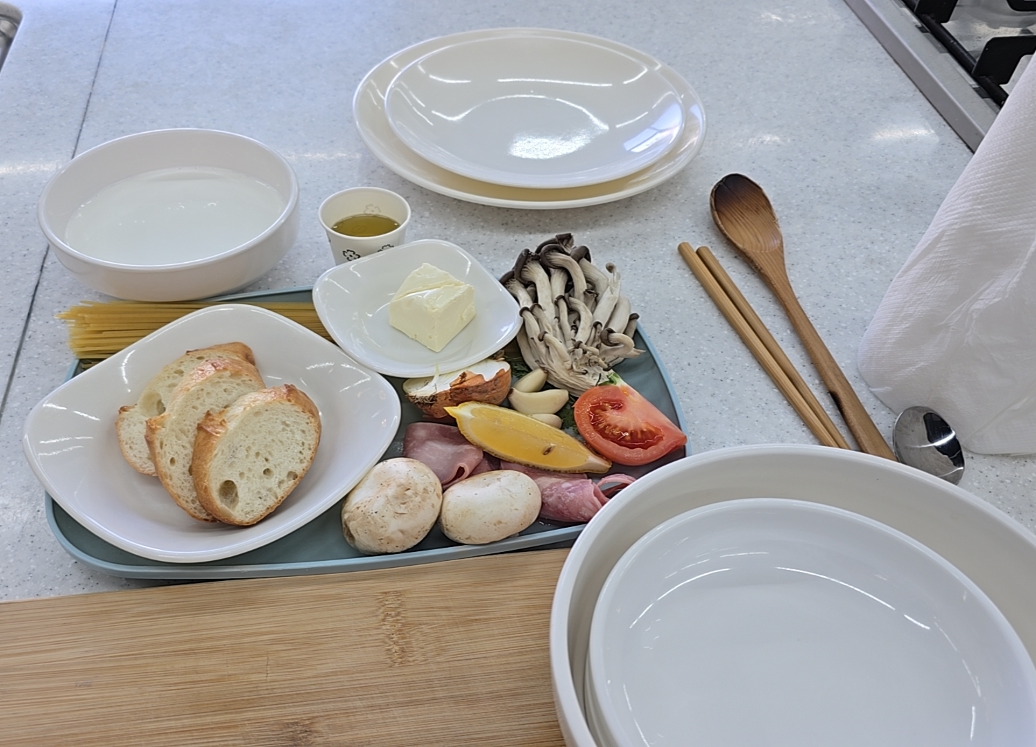 여기서 파스타를 제대로 처음 배우는거라 어떻게 만들지 기대가 되었다.