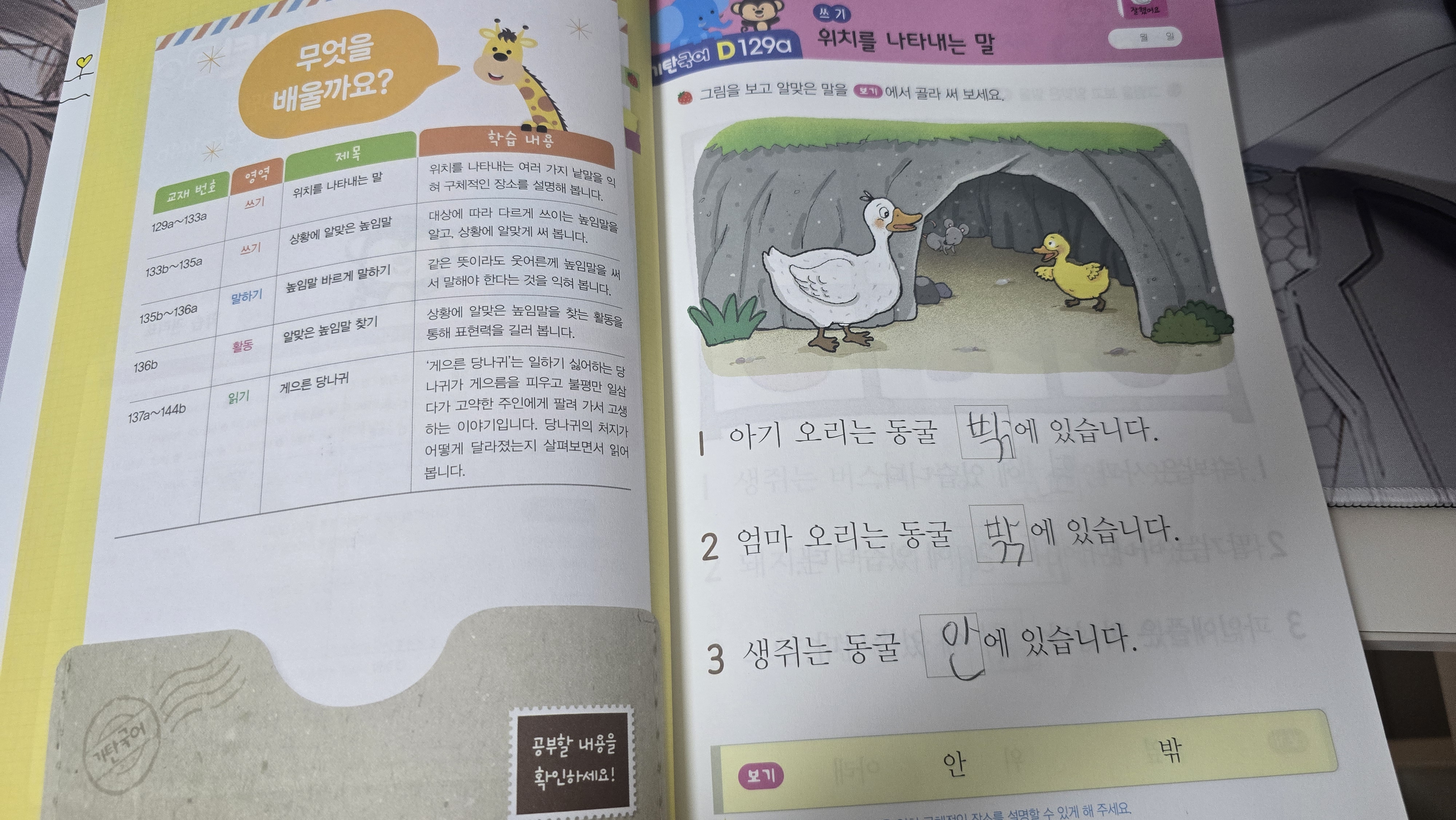 기탄국어 D2 끝나고 나서 D3를 바로 풀렸다. 방학동안 한달 정도 2권은 빠른속도로 풀린듯..하면 할 수록 아이도 푸는 속도가 빨라지고, 긴 글도 읽는데 시간이 걸렸는데 요새는 ADHD 치료도 같이 해서 그런지 꽤 빨리 읽는다. 내가 아이의 수준을 조금 낮게 봤는데 틀린것 없이 수월하게 잘 풀어줬다.요정도면 일반 아이들은 유치원생들은 거뜬히 풀 수 있을정도인듯. 높임말도 자연스럽게 배우게 할 수 있어서 좋은듯. 하루분량은 쉬운것 위주로 좀 많이 숙제를 내주고 긴글이 나오는것은 같이 글을 읽어보면서 풀었다. D단계는 대체적으로 쉬운편에 속하는것 같다. 여기서 좀 한단계 올리면 좋을듯.. 지금 D4 하고 있는데 얼른 D5까지 끝내고 E단계로 넘어가야겠다.